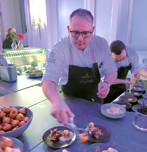 Ronny Siewert kredenzt köstliche Gänseleber, Topinambur Sorbet, Herbst-Trüffel, Sellerie und fruchtige Rotkohl-Emulsion, Foto: Martina Reckermann