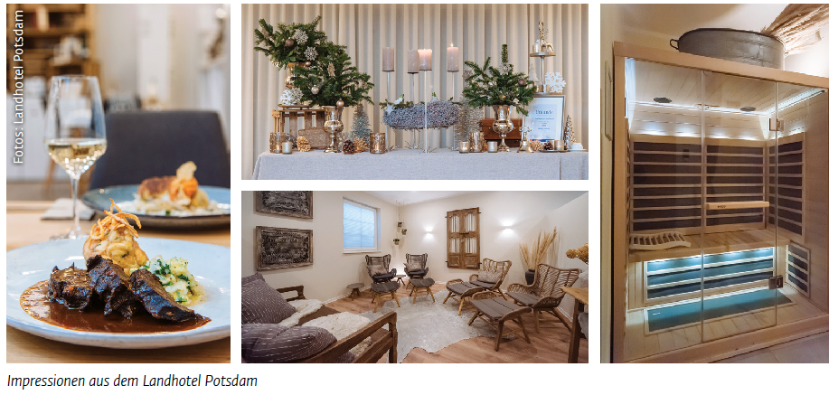 Nicht unwichtig sind die Erreichbarkeit, Parkmöglichkeiten und Übernachtungsoptionen, was insbesondere bei mehrtägigen Events von Bedeutung ist. Viele Hotels bieten dafür passende Kombinationsangebote an, die mitunter auch Relax-Angebote beinhalten. Auch im Landhotel Potsdam sind Sauna und Wellness möglich – übrigens auch für externe Gäste. Letztlich sollte eine Lo-