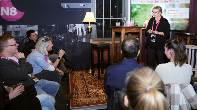 Die sogenannten „Fuck Up Nights“ widmen sich dem Scheitern, insbesondere im unternehmerischen Kontext, aber auch darüber hinaus. Rückschläge, Niederlagen, Fehler machen – all dies wird auf vielen gesellschaftlichen Ebenen als ein Makel angesehen, zumindest in Deutschland. In Ländern wie USA oder Israel wird ein gescheitertes Unternehmensvorhaben dagegen als wertvolle Erfahrung betrachtet, die zur persönlichen und beruflichen Weiterentwicklung beiträgt. So haben das auch die drei gescheiterten Helden in Brandenburg erlebt. Sie zeigten dem Publikum, dass es darauf ankommt, wieder aufzustehen und weiter zu machen. Ganz so wie der Vogel Phönix, der am Ende seines Lebens in Flammen aufgeht, um dann in neuer Schönheit aus seiner eigenen Asche wieder aufzuerstehen.