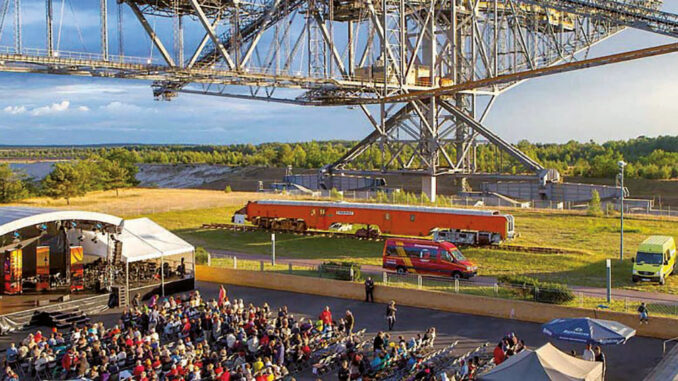 Weithin sichtbar ragt die ehemalige Abraumförderbrücke F60, im Volksmund „liegender Eiffelturm“ genannt, in den Himmel: Mit ihrer Länge von 502 Metern, einer Breite von 204 Metern und einem Gewicht von über 11.000 Tonnen ist die fünfte und letzte in der DDR gebaute Förderbrücke ein beeindruckendes Denkmal Brandenburger Industriekultur. Führungen bis in luftige 80 m Höhe eröffnen atemberaubende Einblicke in die meisterhafte Konstruktion und ebenso außergewöhnliche Ausblicke in die ehemalige Tagebaulandschaft. In der Sommersaison ist der Stahlgigant auch eine beliebte Kulisse für Open Air und lädt zu vielfältigen Konzerten, Festivals und Shows.